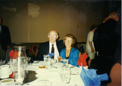 Tom and Jackie Cassis; The Christiansens and Cockrells in front of the Banquet Podium