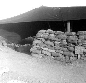 ![]() | Bunker constructed from sandbags on Hill 55. |